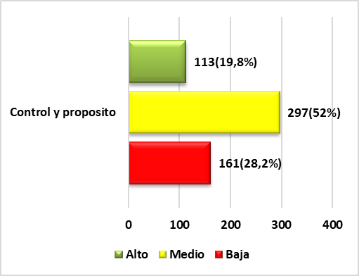 Figura 5. Resiliencia en su dimensión control y propósito en adolescentes de una Institución Educativa en zona vulnerable de Lima