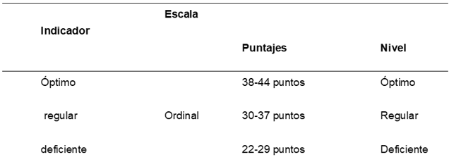 El instrumento se basó en el cuestionario de la tesis mencionada previamente, que aborda las prácticas de higiene, y fue adaptado a tres dimensiones: 1) Datos demográficos (ítems 1 a 3); 2) Fuente de Información sobre el lavado de manos (ítems 4 y 5); 3) Conocimientos sobre el lavado de manos, dividido en Conocimientos generales sobre el (ítems 6 a 20); y conocimientos sobre el procedimiento del lavado de manos (ítems 21 a 27). En esta última emplea una escala de respuesta en la que se asignan 2 puntos a la respuesta correcta y 1 punto a la incorrecta. Finalmente, se utilizó una escala valorativa global para medir el nivel de conocimientos:
