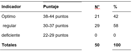 La figura 7 muestra el nivel de conocimientos de los participantes sobre el lavado de manos, evidenciando que el 42 % poseía un conocimiento óptimo, mientras que el 58 % tenía un conocimiento regular.