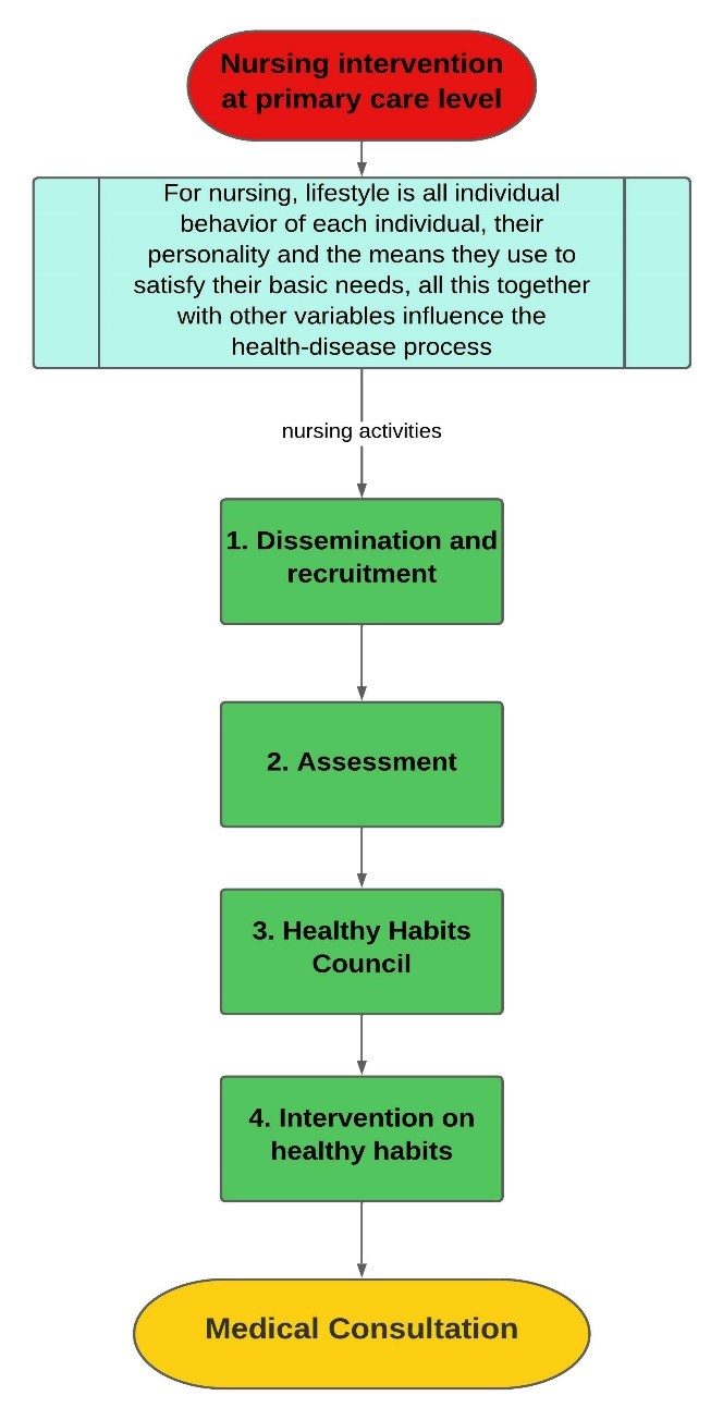 Figura 1. Diagrama de flujo sobre la intervención que realiza el profesional de enfermería en el primer nivel de atención en el estilo de vida de adultos mayores